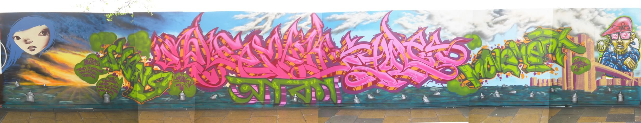 Below is a selection of pictures of graffiti artwork created by our graffiti artists either in a workshop setting with a group of young people or on their own. Click on any of the thumbnails for a closer view.